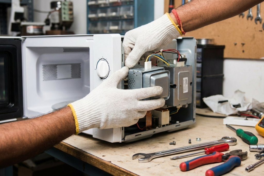 Microwaves often face heating problems, door switch failures, sparking, plate not rotating, display issues, and electrical faults. Our technicians diagnose and fix these on the spot.